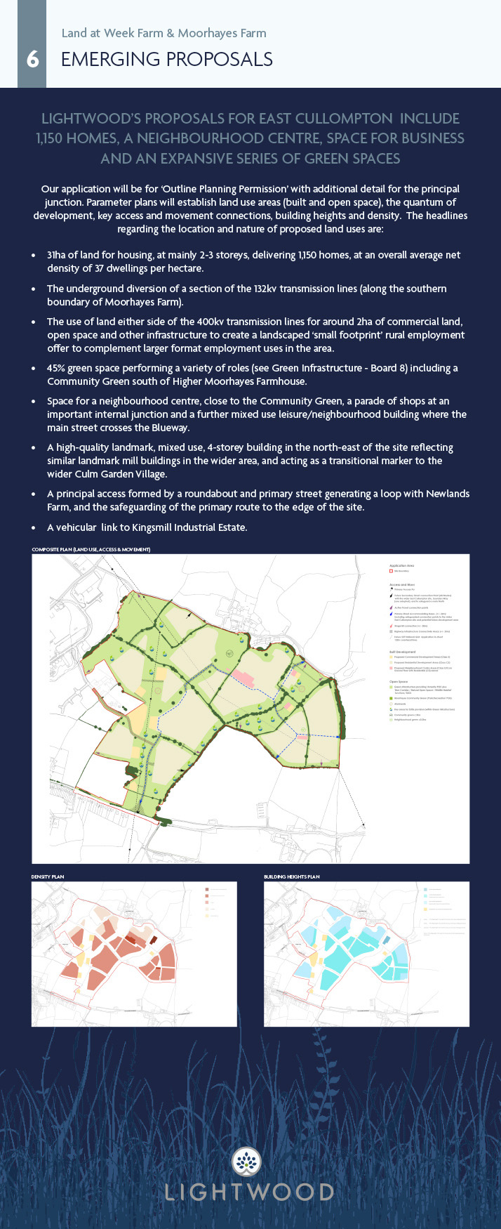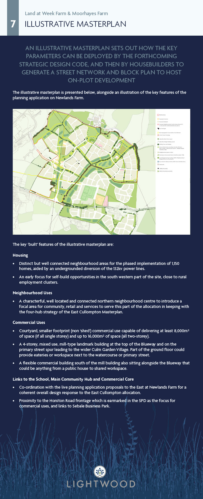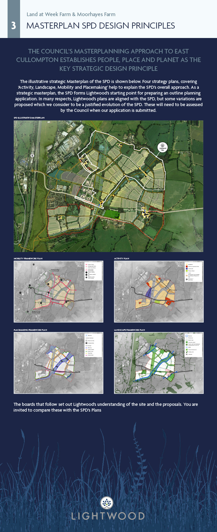 To advance the delivery of the current allocation, the Council adopted its Supplementary Planning Document (SPD) in April 2023 with a vision focused on Planet, People and Place. Lightwood (and others) are now advancing our proposals in response to this. As work is progressing on advancing planning applications, Mid Devon District Council is also progressing a ‘Strategic Design Code’ and ‘Phasing and Delivery Strategy’ to further inform how development is delivered at the allocation. Lightwood is preparing an outline planning application to establish the principles for delivering development at the site and are seeking your feedback on these proposals. Further opportunity for comment will occur when the application and all its supporting information is submitted.
